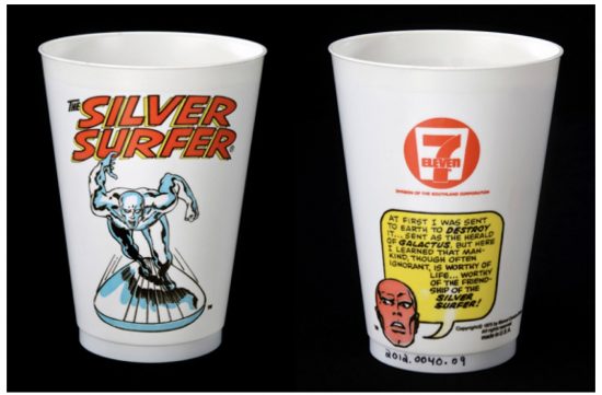 Capsule eternities were stacked everywhere around us; floating heads would tell their story — all that you needed to remember and all that a newcomer might ever know — from the backs of 7-Eleven’s plastic collector superhero Slurpee cups. Kids with more distinctly drawn lines could get cups picturing baseball players, but the superbeings’ summaries were soliloquies that articulated a less definable form of vital stats.
