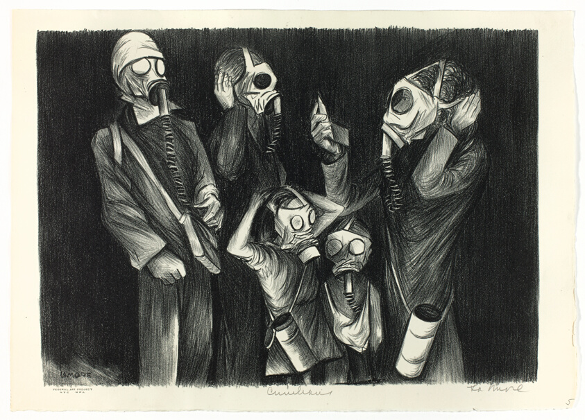 “Guston and Kadish created a work where the horrors of the Inquisition intersected with those of the Ku Klux Klan and the Gestapo, said Landau. The mural includes a swastika and three hooded figures perched on ladders and a scaffold above scenes of torture — images that would recur in Guston’s later work.” — New York Times