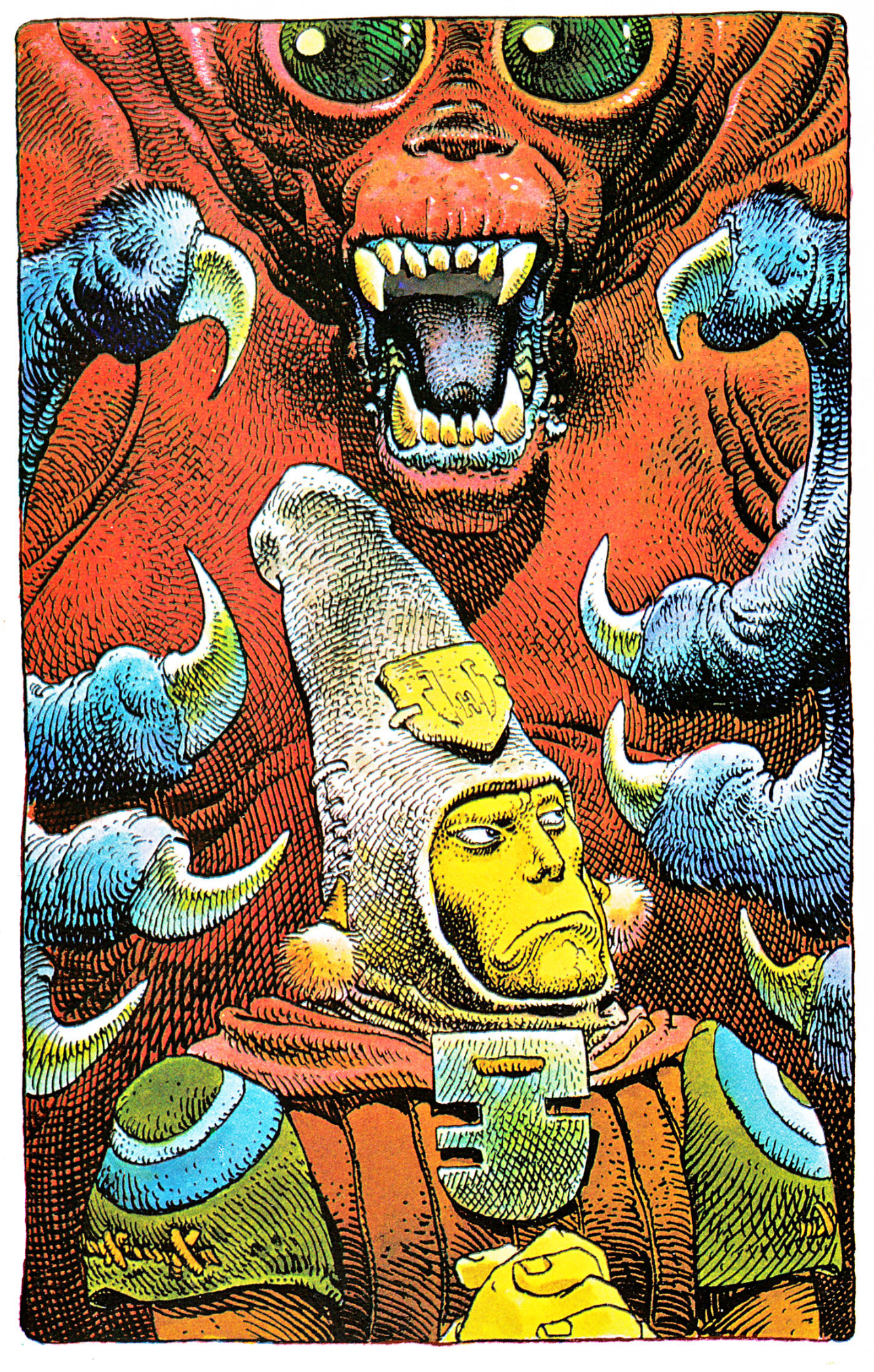 Crowned a “Punk Everyman,” Jimbo’s tender hijinks unfold as existential science fiction of the soul. His celestial searching collapses time and telescopes space, with an ever-deepening undercurrent of empathy and love. Gary Panter’s stories are primal poems that seep into the brainpan, take hold, resonate, help guide your own meander.